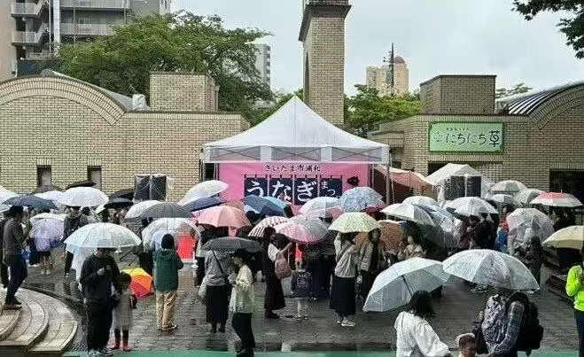 2025年5月31日、埼玉市浦和区で第22回「浦和うなぎ祭り」が開催されました。当日は生憎の雨天でしたが、天候に関係なく市民たちは炭火で焼かれたうなぎの香りに惹かれて押し寄せ、会場は大変な賑わいとなりました。