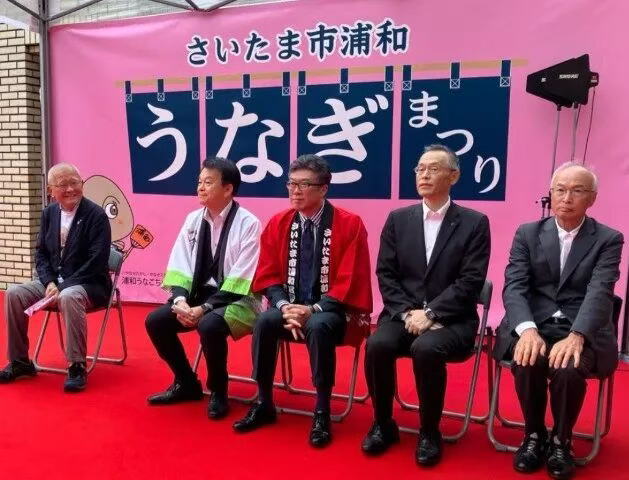毎年のウナギ祭りは地元政府のリーダーに非常に重視されており、今年は埼玉市議会議員の帆足和之氏、埼玉県議会議員の野本玲子氏などが現地に訪れました。帆足和之氏は開会式での挨拶も行い、各ブースを回って出展している協会や商店に親しく声をかけました。