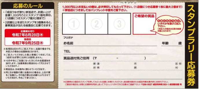特に注目すべきは、イベントのスタンプラリーです。来店して買い物をするとスタンプを集めることができ、3つ集めると抽選に参加できます。賞品には成田限定の旅行券やホテル宿泊券などがあります。昨年のイベントには全国から34,845人が参加し、今年はさらに記録を更新する見込みです。「21年前イベントが始まった頃と比べると、今では神社への参道はずっと賑やかになりました。」と伊藤副会長は補足し、「多くのリピーターは、スタンプラリーに参加するためだけに訪れるのです。」